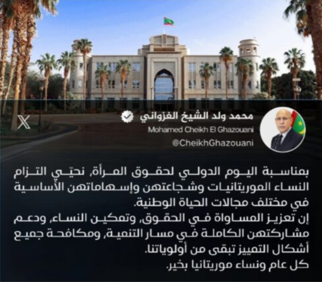 أجرى رئيس الجمهورية، محمد ولد الشيخ الغزواني، اليوم الأربعاء، اتصالا هاتفيا مع العاهل البحريني، حمد بن عيسى آل خليفة، عقب ما تعرضت له المملكة البحرينية من هجمات مؤخرا.