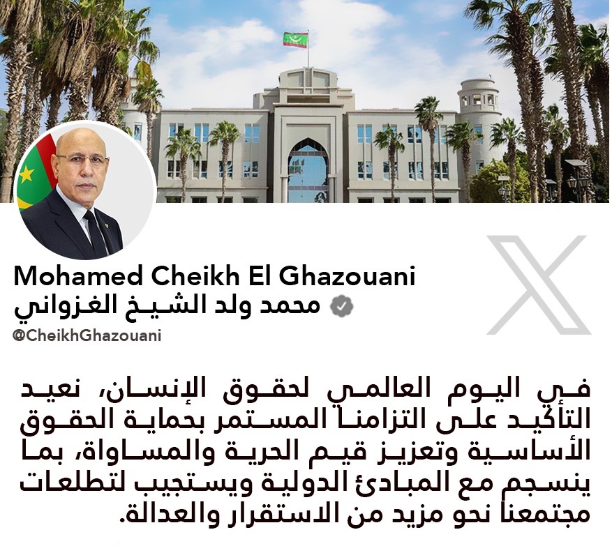 رئيس الجمهورية محمد ولد الشيخ الغزواني التأكيد على التزام موريتانيا المستمر بحماية حقوق الإنسان، بما يستجيب لتطلعات المجتمع إلى مزيد من الاستقرار والعدالة.